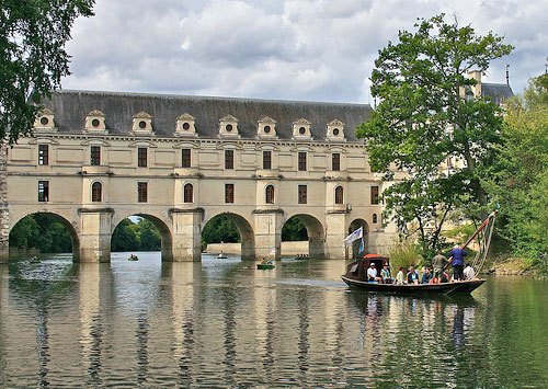 You'll notice we're taking only National (N) or Departmental (D) roads as we ride through France's gentle countryside. We're traveling north to the mouth of the Loire, which will lead us to the most feminine of the Loire châteaux: Château de Chenonceau. As we leave Provence, we start seeing cows instead of goats and sheep in the pastures ~ something you'll remember over your cheese plate tonight. With that thought, let's eat. Keep in mind that, outside of big cities, the lunch sitting is from 12 to 1:30 and the dinner sitting from 7:30 to 9. Stop in a town or village that looks inviting, park the car and stroll past several restaurants, reading the menus posted in front until you find the one you like. If it has a terrace, you can sit at a table facing out so you can give passersby the once-over. It's a game for everyone, and the passersby dress for it. You'll be given the carte, which we call the menu. What they call the menu is like the daily special, which gives you one price for several courses, usually an entrée (appetizer), a plat (main dish), and dessert. The menu gets you fresh regional specialties that are on hand and in season. Order it even if you don't know what it is, or ask for the chef's recommendation. Order a glass of vin du pays or a half bottle (50 cl) of wine from a local domaine. Don't do that American thing of substituting two entrées. Just don't. Now look around. Study your fellow diners (it's a French art form). The friendly middle-aged couple next to you will either honor your privacy or take you under their wing. Profitez! They think you are fabulous for being an American and traveling solo instead of en troupeau like your countrymen. After lunch you might want to window shop (since no husband is here to steer you away from that chic boutique, or stand outside by the door tapping his foot). Or you might want to peek into the medieval church, visit the pottery museum, or meander through that little park with its splashing fountain and astonishing roses. Back in the car, you're refreshed and unhurried, because tonight's lodging is just a few hours away, and you'll be there before it gets too dark to enjoy the scenery. Slip in a CD ~ Edith Piaf, Jane Birkin, or our lovely Madame Sarkozy ~ and feel yourself blending into the benevolence around us.