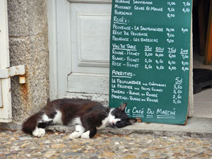 Mortemart has a little hotel with an excellent restaurant, but it also has a small café in the square ~ LeCafé du Marché ~ with young, new owners and a great menu. As you sit outside for lunch (dinner is not served here) you can admire the Château des Ducs de Mortemart on the banks of a swan-filled pond . . . it's just all too make-believe! ![]() ![]() ![]() Cat